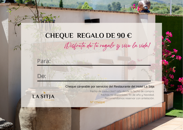 Cheque regalo para canjear por cualquier servicio/s del Hotel La Sitja.