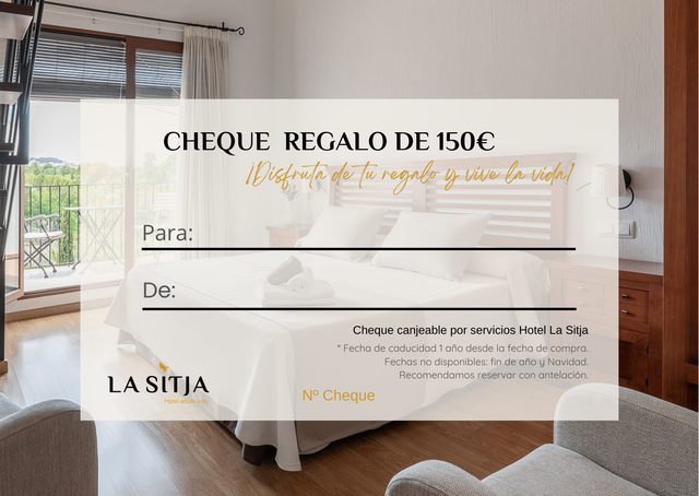 Cheque regalo para canjear por cualquier servicio/s del Hotel La Sitja.