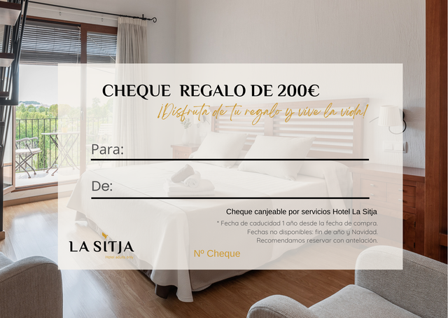 Cheque regalo para canjear por cualquier servicio/s del Hotel La Sitja.